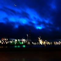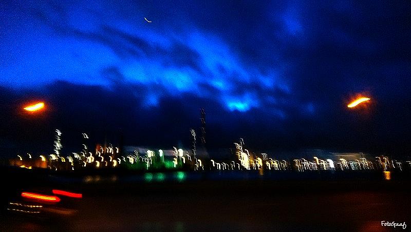 Deze foto maakte ik vanavond, maar bewoog mijn camera per ongeluk tijdens de opname... Nu vind ik deze foto toch best wel leuk geworden. Dit is een opname van de Shell locatie in het Botlek gebied, gekleurde lampen overal, fabriekspijpen, lantaarnpalen en een voorbij rijdende auto. Erg leuk detail vind ik het kleine hapje maan dat te zien is hoog aan de hemel.