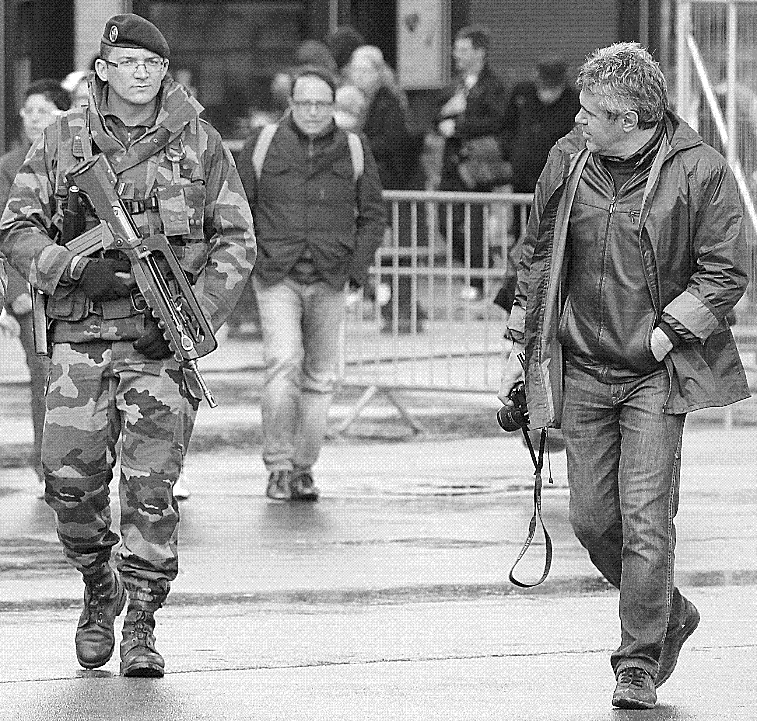 Foto genomen in Parijs, onder de Eiffeltoren. Ik was verbaasd over de gewapende milities. Dit heb ik bij ons aan het Atomium nog niet gezien. Helaas vanaf morgen 17 januari 2015 komt zal dit ook onze steden het straatbeeld zijn.