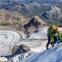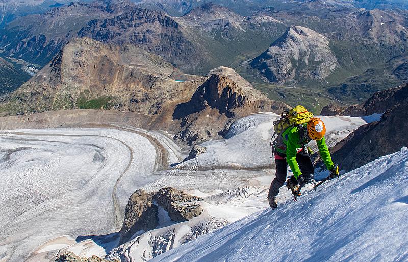 Julius Zonneveld rent omhoog tijdens de beklimming van de Piz Palu.
