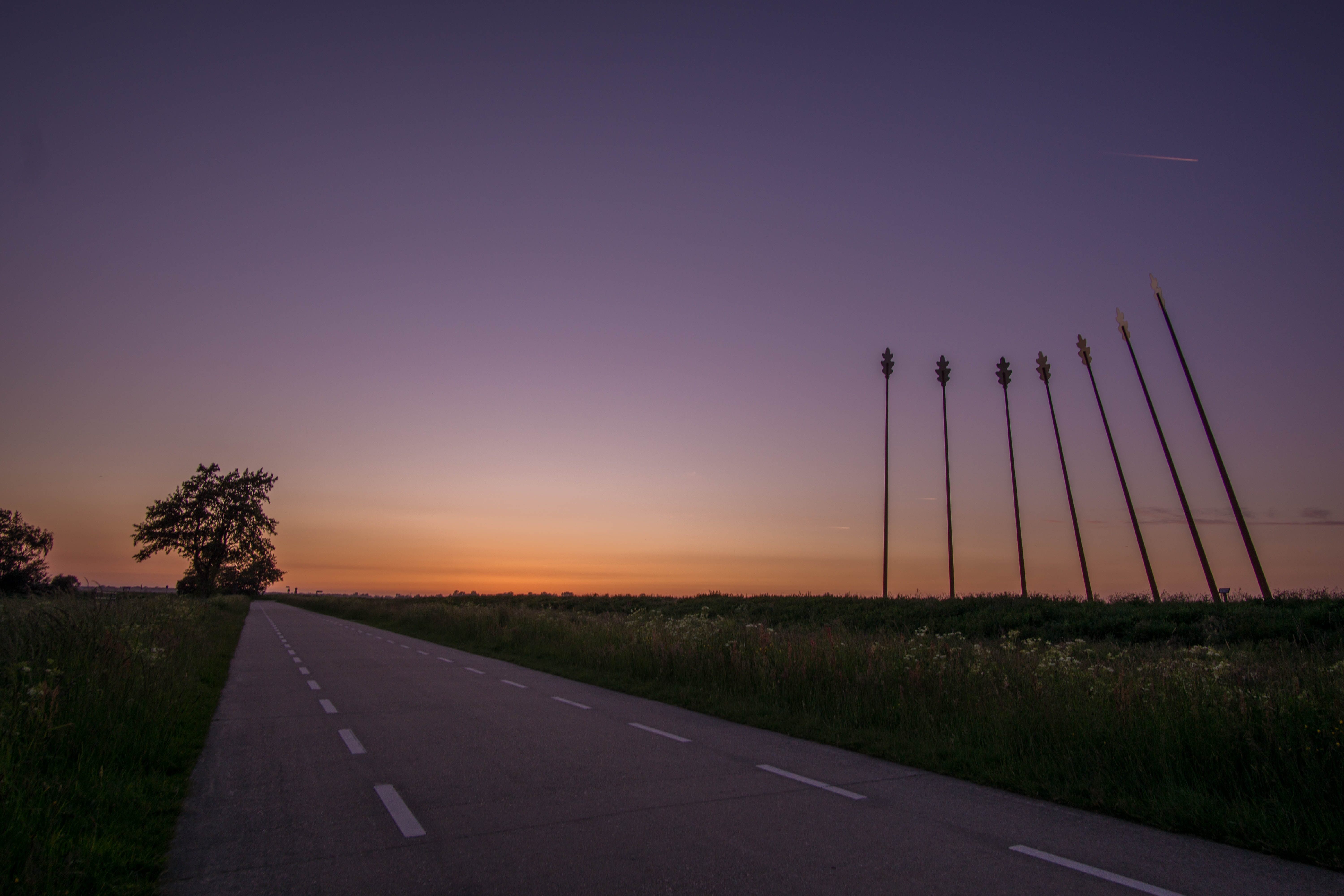 Foto zonsondergang bij een monument in de ommelanden.