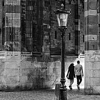 tijdens een fotowandeling in Utrecht, lang bij de Dom gestaan tot de mensen precies daar wilden gaan lopen waar ik ze hebben wilden, zonder andere mensen op de foto te krijgen. Het is gelukt!
