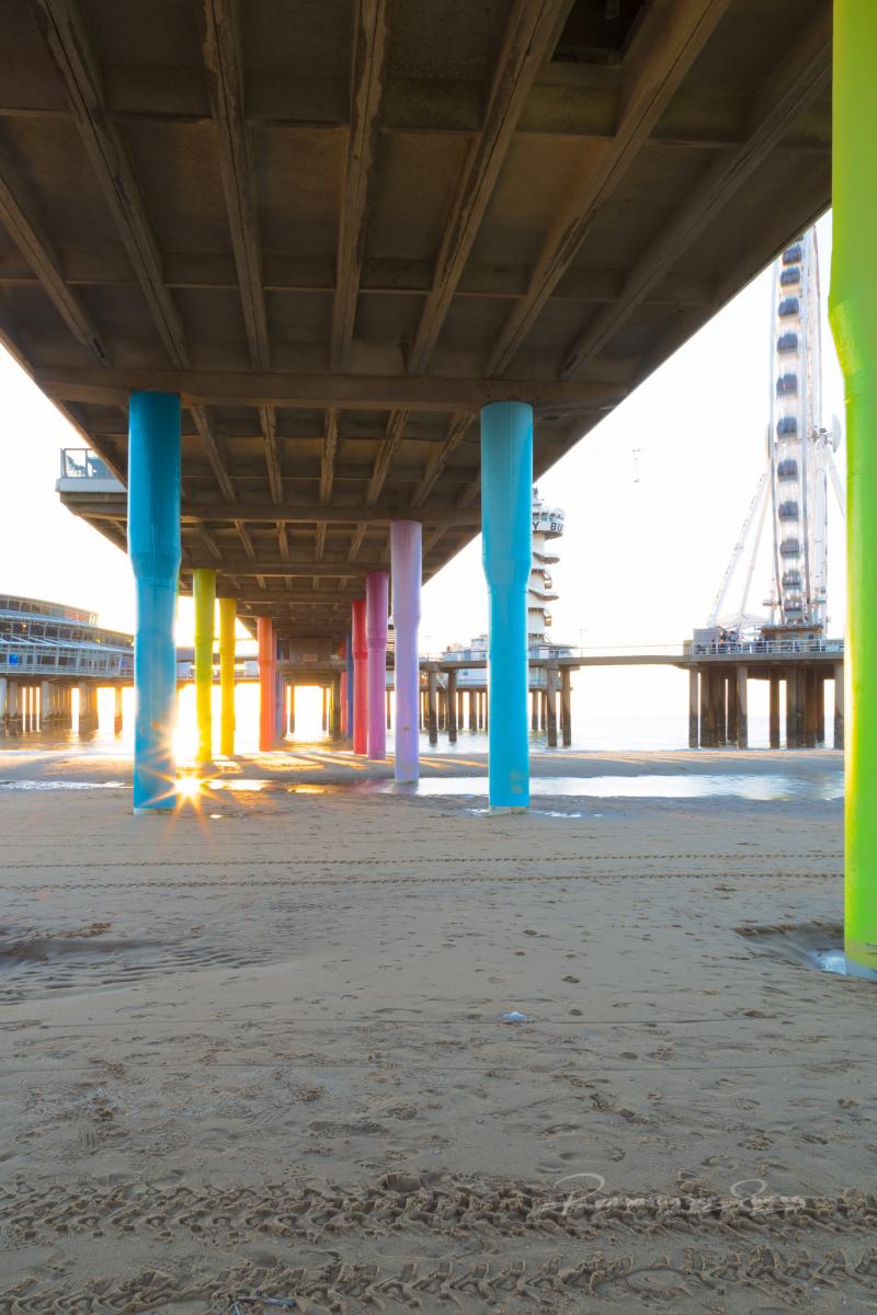De Pier heeft alles, strakke lijnen, kleuren en een mooie zonsondergang.