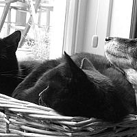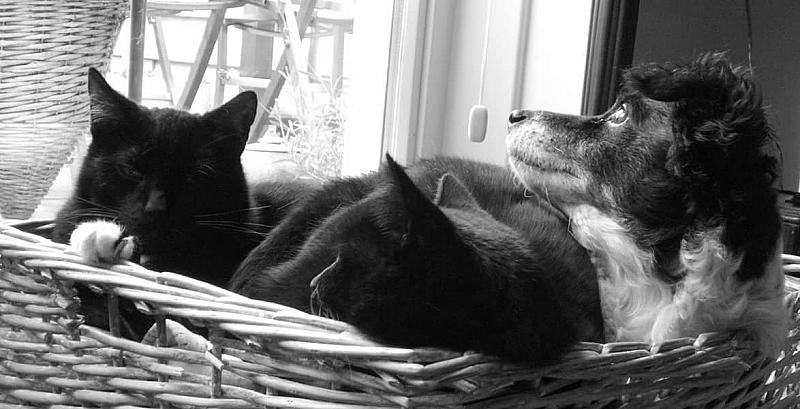 Onze hond leeft helaas niet meer. Ze werd opgevoed door onze poes.
