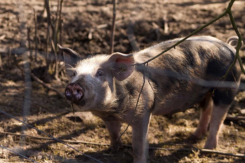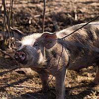 Vlak bij huis houd iemand varkens voor het vlees, deze varkens hebben een heerlijk leven omdat ze vrij rond kunnen lopen (afgesloten terrein).