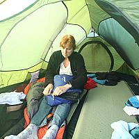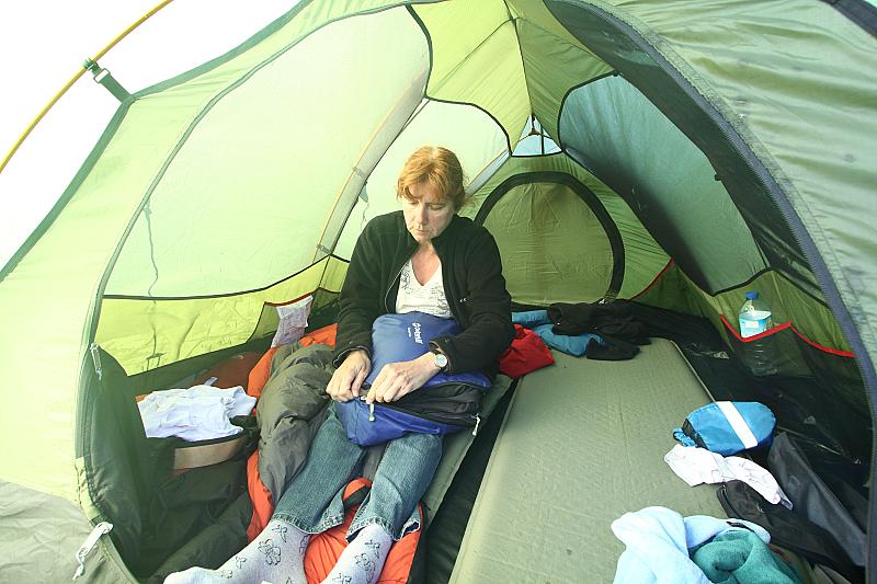 Opstaan en tent opruimen voor een nieuwe fietsdag