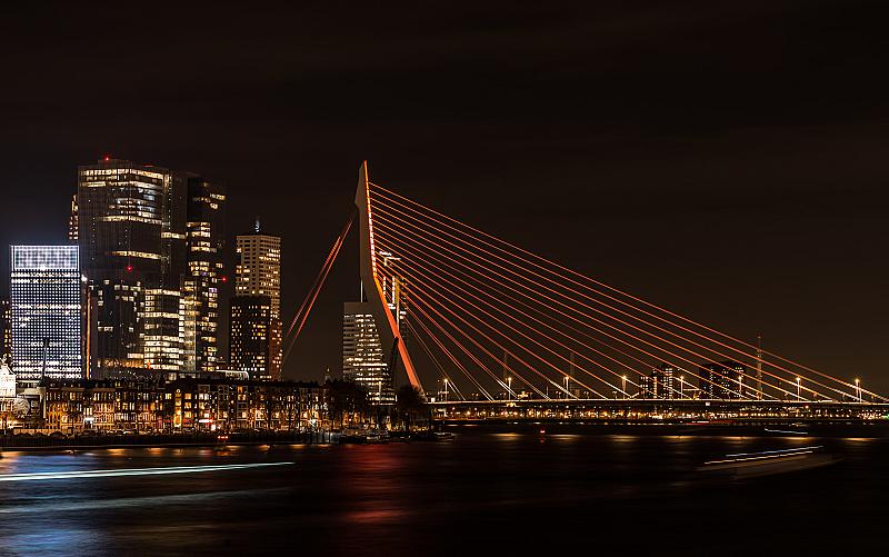 SW Erasmusbrug kleurt orange