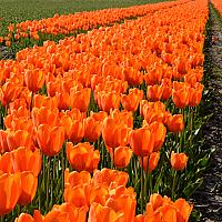 Prachtig oranje tulpen tapijt in het weiland, van duizenden knaloranje tulpen!