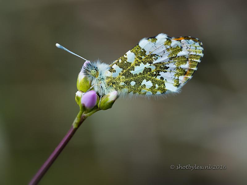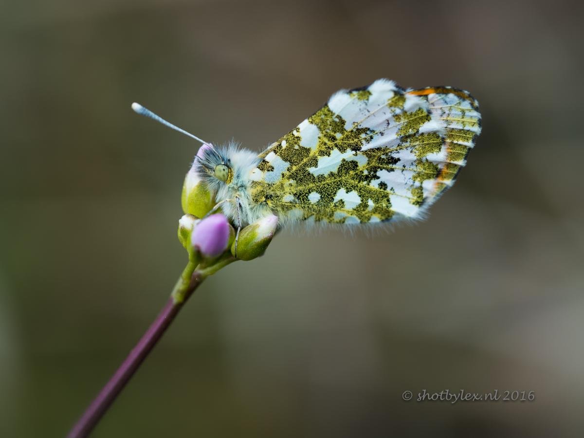 Ondanks de bewolking en de koude zijn ze al wel te vinden! Oranjetipjes...