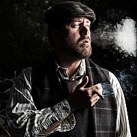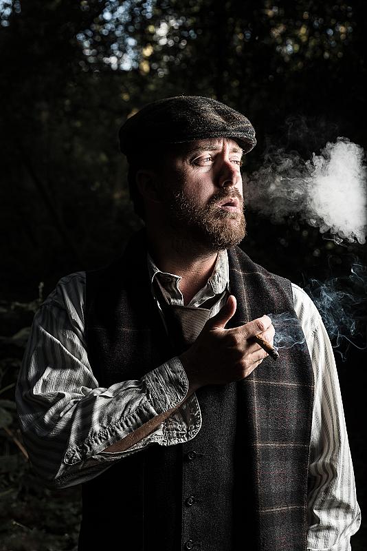 In oldschool Britse kostuum overdenkt deze man zijn zonden. Dit onder het genot van een lekker sigaartje