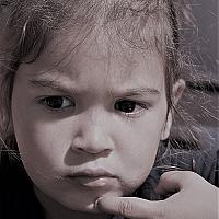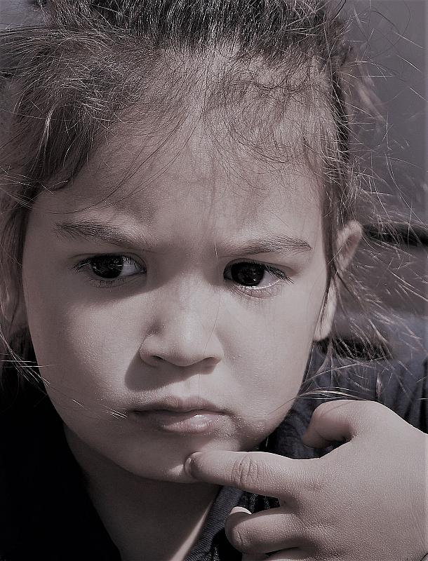 Zwart wit, kind, portret, serieus