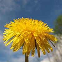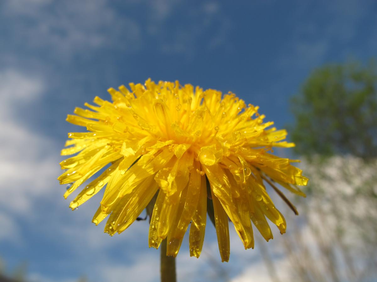Paardebloem tegen de lucht aangehouden, voor een extra effect heb ik hem besproeid met water.
