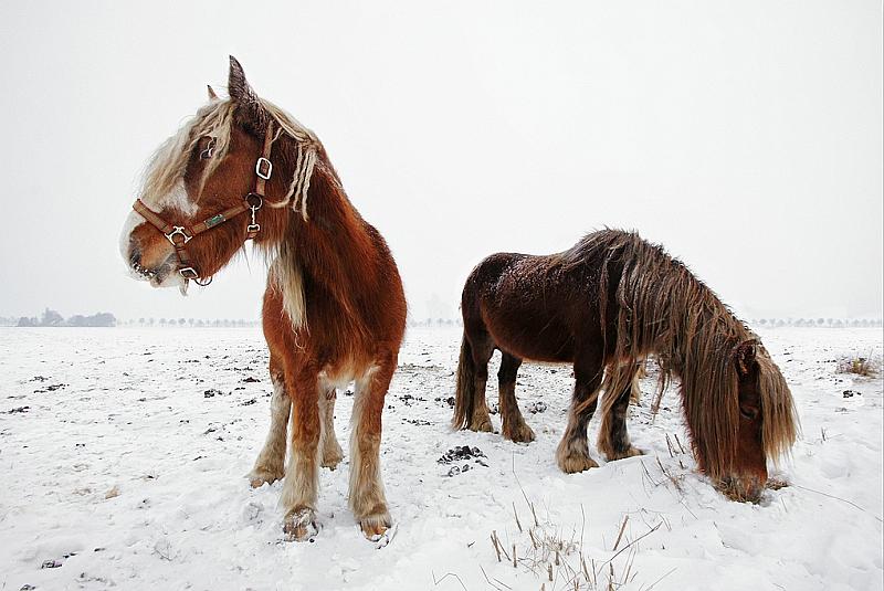 Paarden in de sneeuw