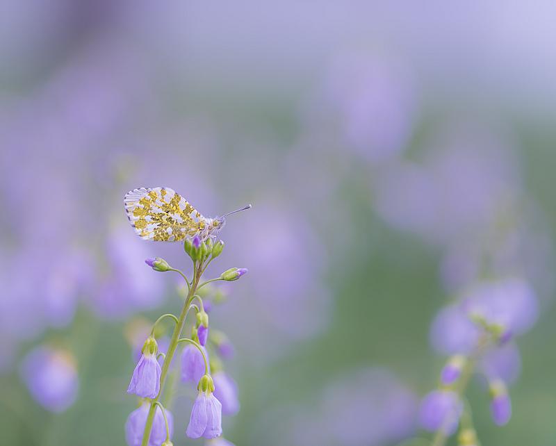 Middenin een veld met pinksterbloemen vond ik dit oranjetipje, perfect voor een mooie achtergrond.