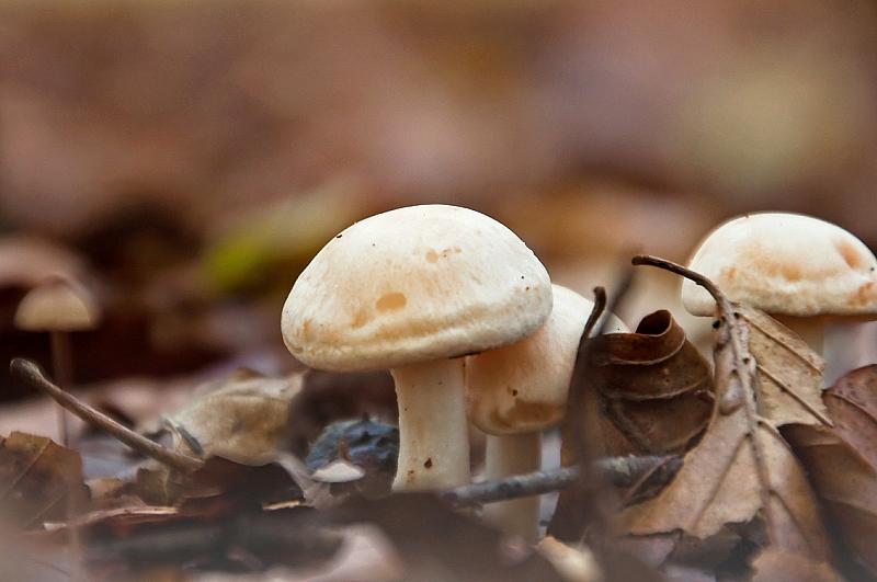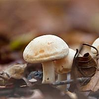 Herfst in het bos en de paddestoelen laten zich weer zien tussen de gevallen bladeren