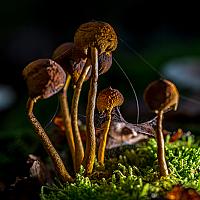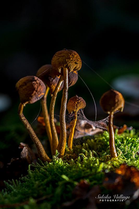Paddestoelen met spinnenweb