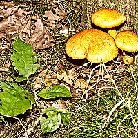 Paddestoelen tegen boom