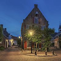 Het oude Pakhuis De Hoop te Amersfoort tijdens het zogenaamde blauwe uurtje. Een nostalgisch stuk in de binnenstad van Amersfoort (Gelderland, Nederland).