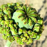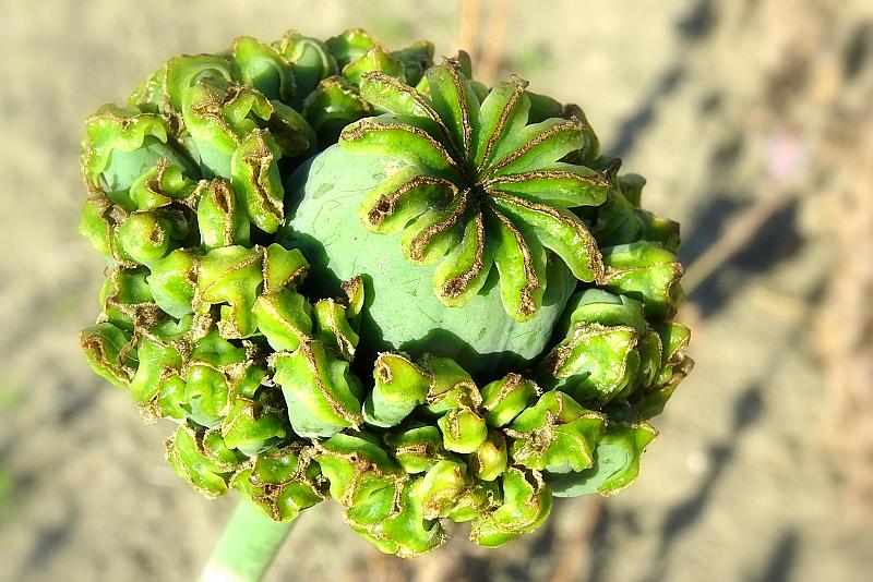 Groen staat meestal voor iets wat in bloei komt of staat, uitzondering is deze uitgebloeide papaver.
