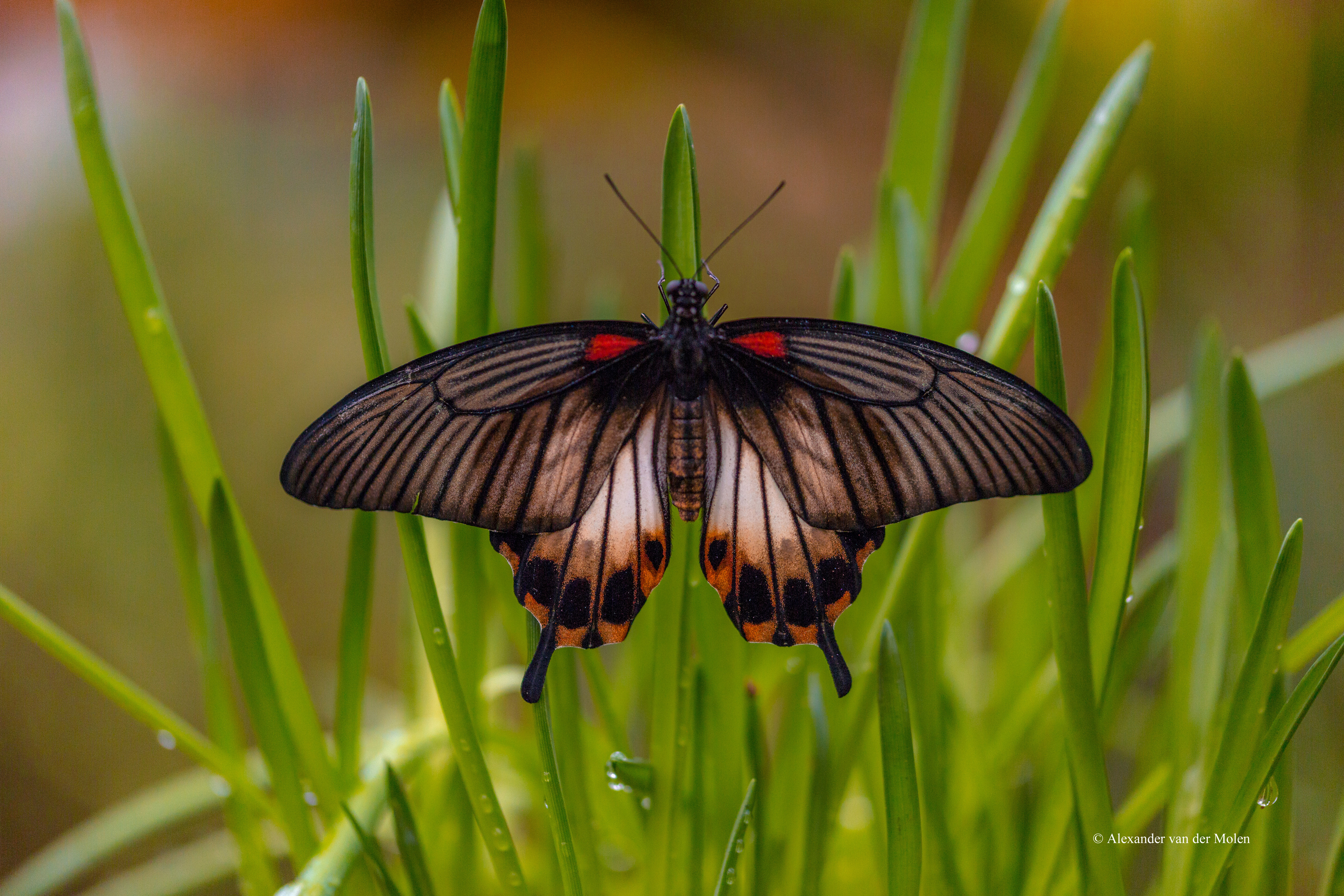 Uitje gemaakt naar een vlindertuin en daar o.a. deze scharlaken mormoon gefotografeerd tijdens het opwarmen