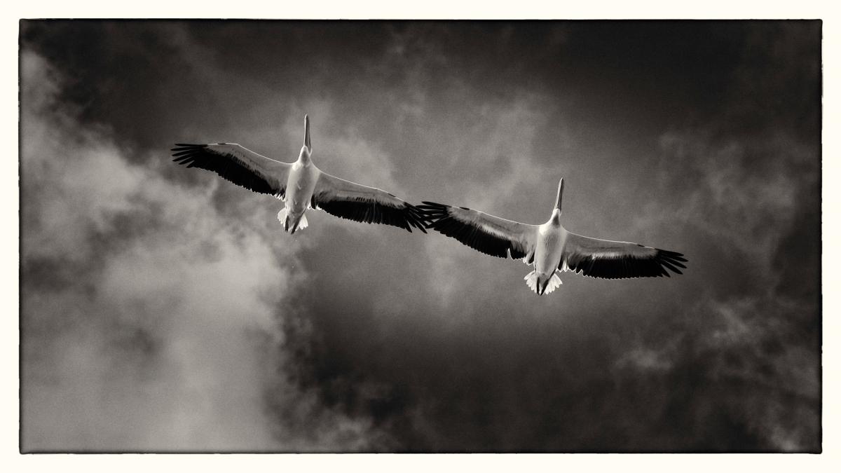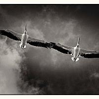 Pelicans in the sky