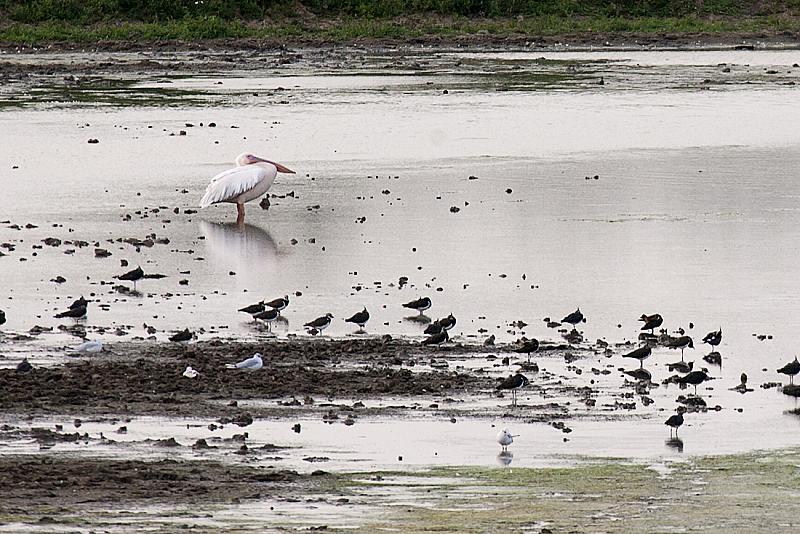 Hij is helaas weer gevlogen, maar er zat een roze pelikaan in Westervoort.