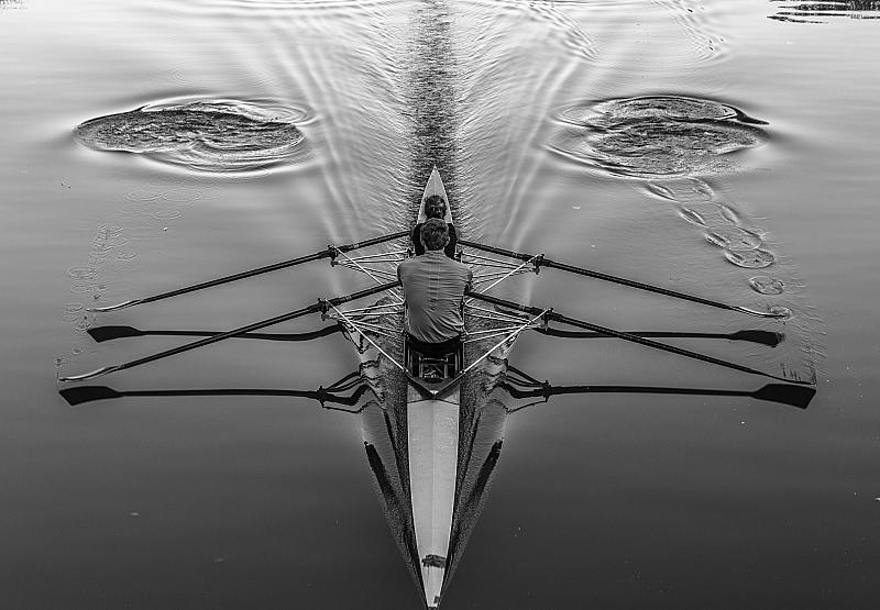 Two rowers in the perfect moment.