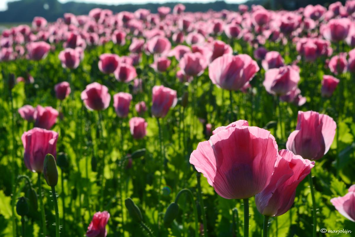 Blauw (!) Maanzaad kleurt voor 2 dagen onze polder heerlijk roze