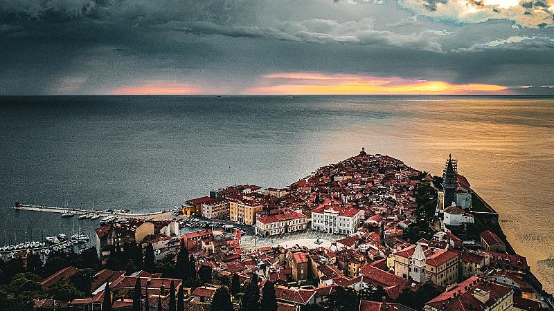 The town of Piran @ Slovenia by sunset.