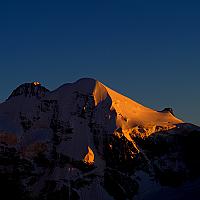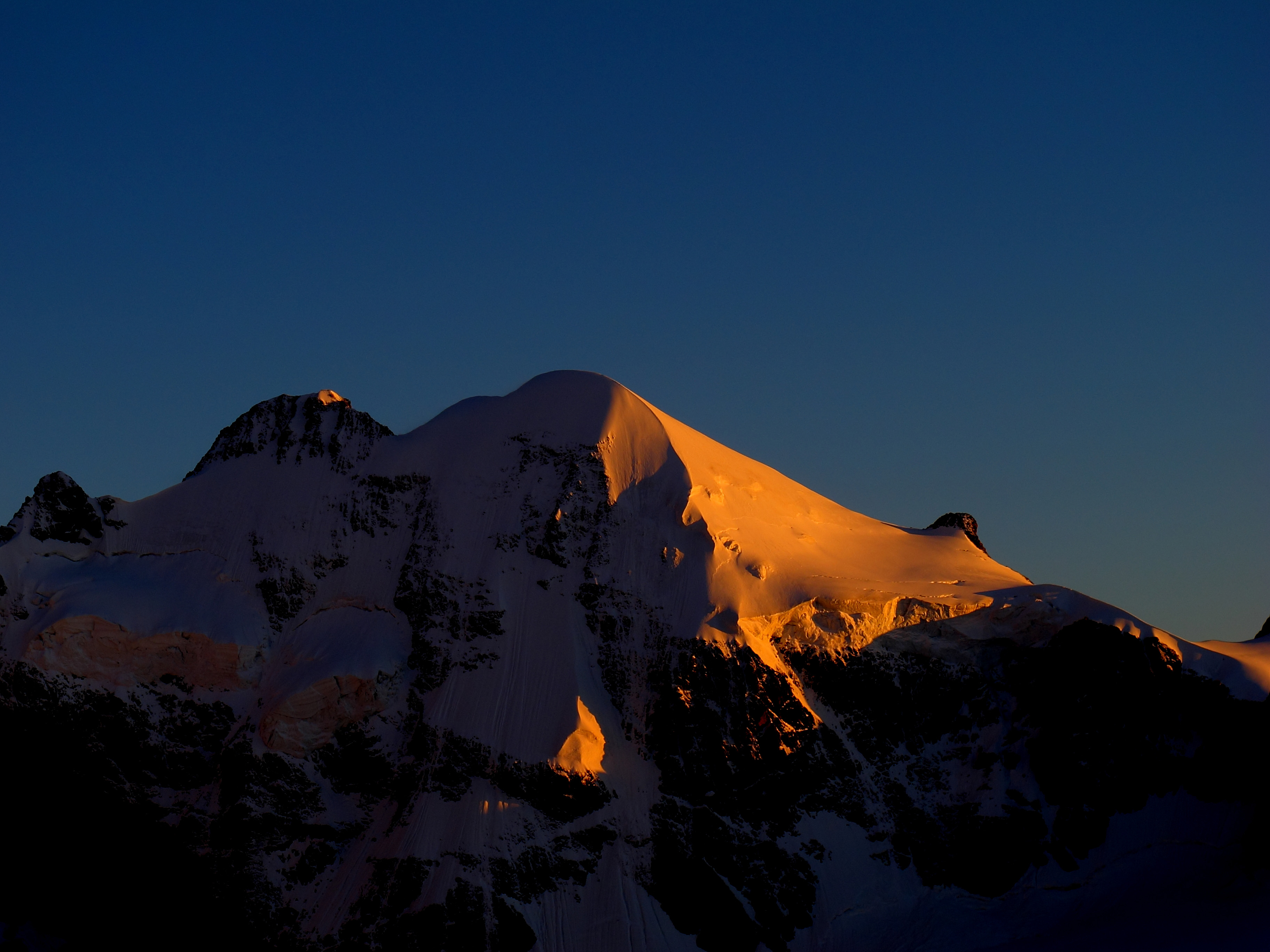 De noordwand van de Piz Roseg in het laaste avondlicht, vanaf de Tschierva gletsjer.