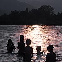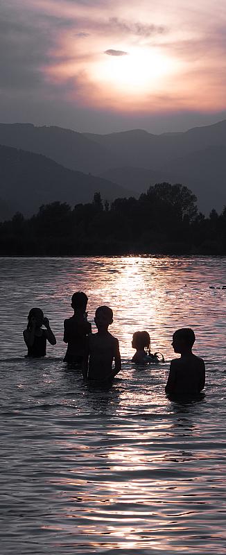 Children playing in the lake. Location: Velenje / Slovenia.