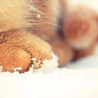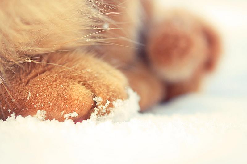Dit zijn de schattige pootjes van Rosti in de sneeuw.