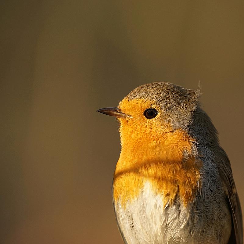Hier zat de roodborst zo dichtbij dat hij er niet helemaal op paste
