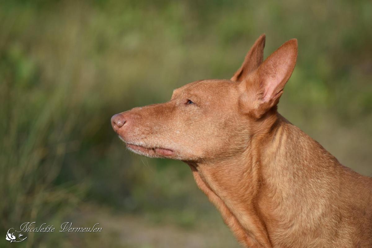 Een Spaanse podenco geniet van de zon