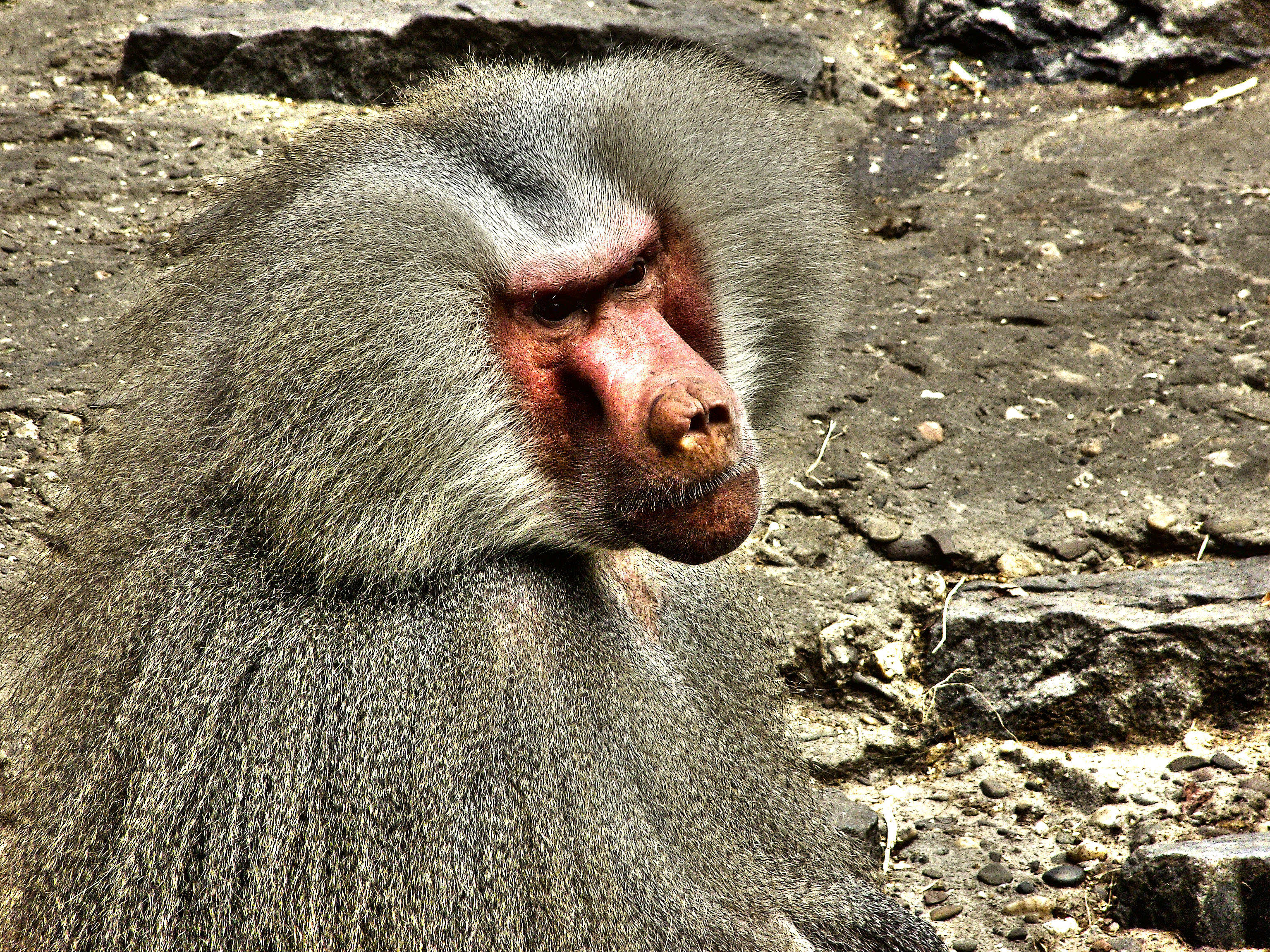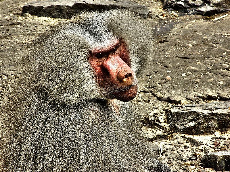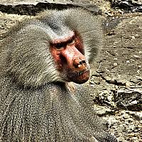 Een baviaan mannetje in de dierentuin in Emmen.