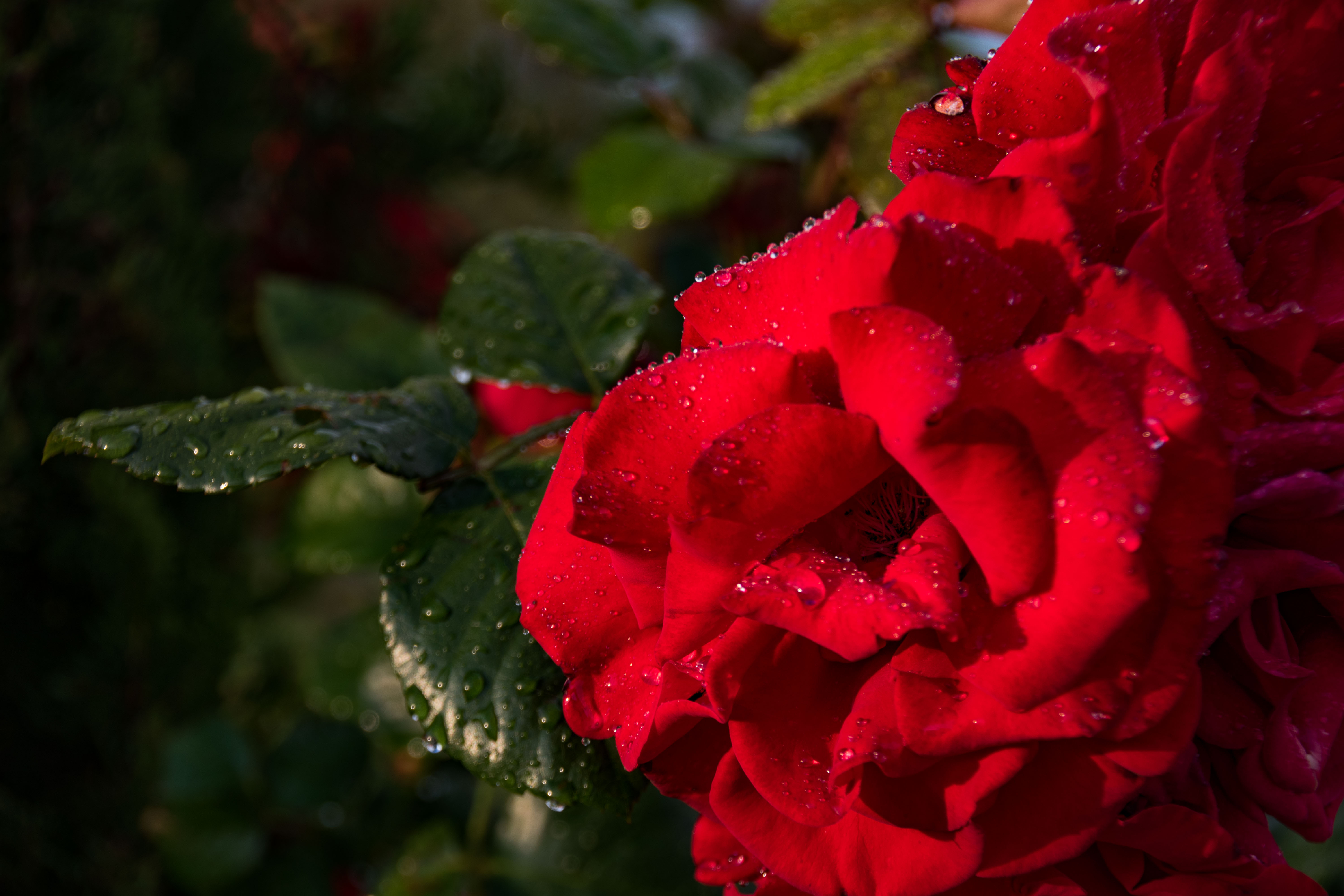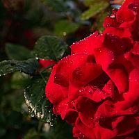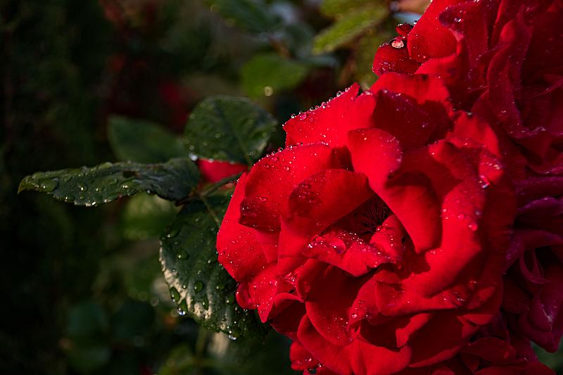 Prachtige rode roos na regenbui