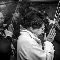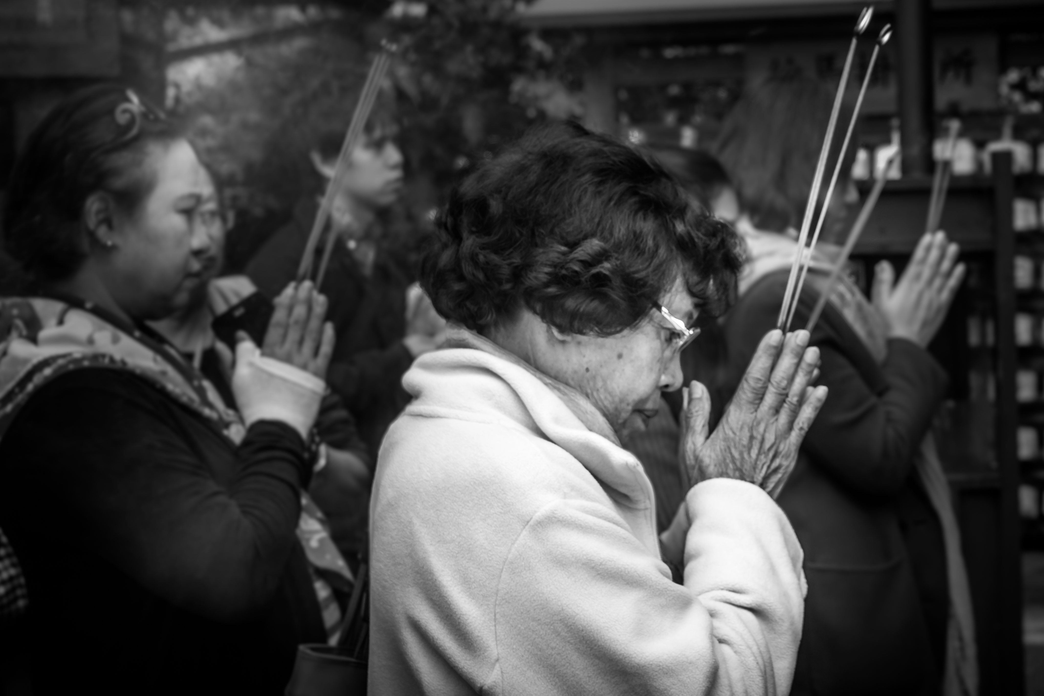 Ik weet het, de foto is onscherp, maar het moment is er wel. Deze oudere dame is aan het bidden nabij een van Kyoto's bekendste en mooiste tempels, de "Kinkakuji (Golden Pavilion)"