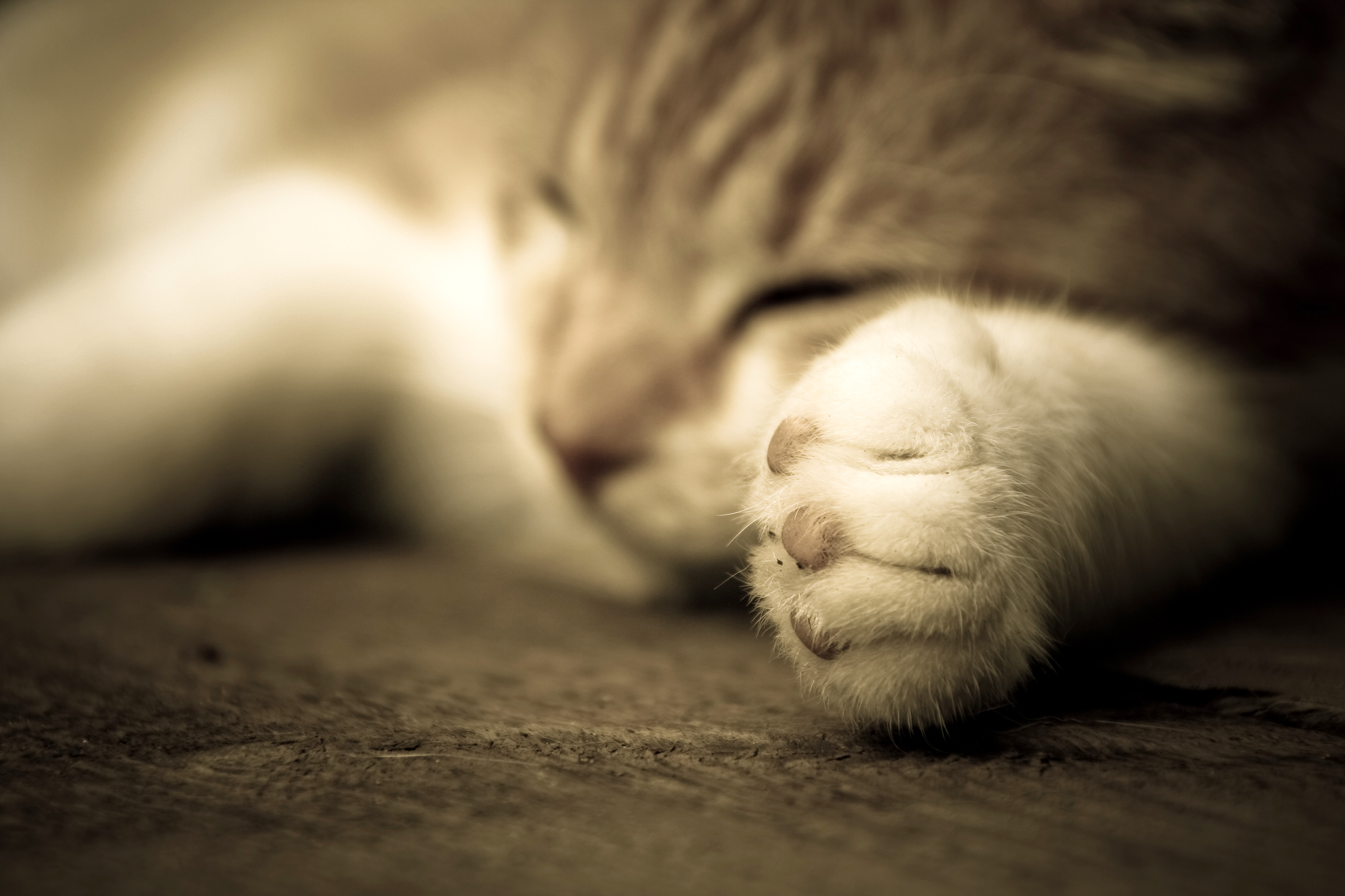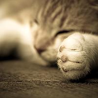 Puk is al een dagje ouder en slaapt veel. Zit en ligt veel stil en is daarmee een ideaal onderwerp voor mijn camera. Hier ben ik op dezelfde hoogte als Puk gaan staan en heb ik vervolgens scherpgesteld op het pootje.