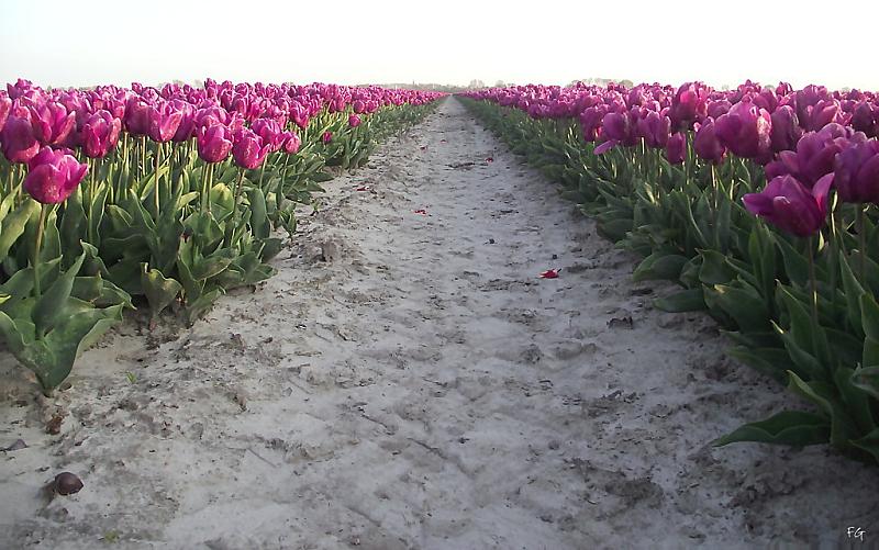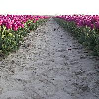 Een prachtig uitzicht op dit tulpenveld met de tulp 'Purple Rain'. Het avondlicht geeft deze paarse tulpen een mooie gloed.