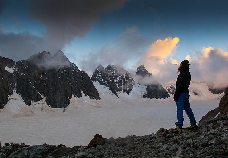 Ruby de Witte geniet van het uitzicht vanaf onze bivakplek vlak voor we gingen slapen.