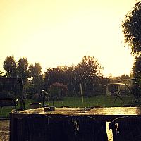 Deze foto nam ik thuis wanneer het begonnen te stort regenen bij fel verlichte hemel