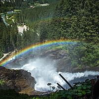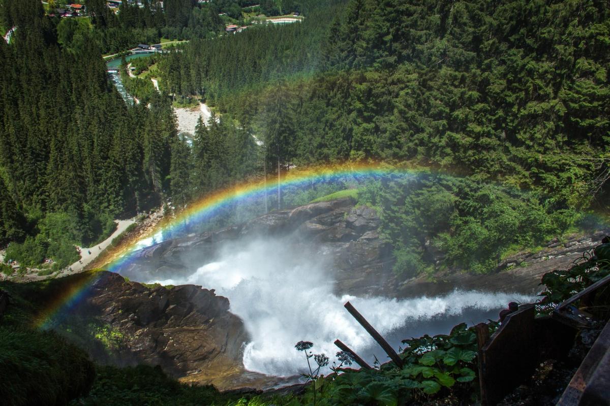 Samenspel van de zon en de Kriml waterval in Oostenrijk