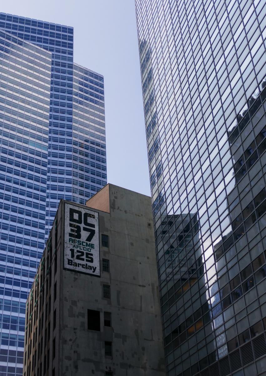 Door de vele glazen gebouwen in New York, zie je veel reflecties van gebouwen. In deze foto is dat ook te zien en wordt oud met nieuw gemengd.