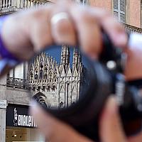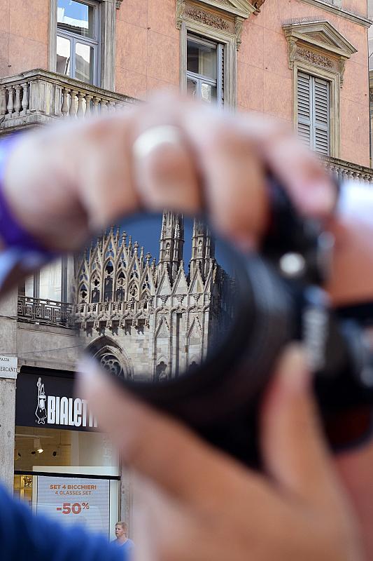 Mijn vader maakte een foto van de dom te Milaan en ik zag de reflectie in het filter.