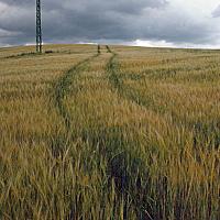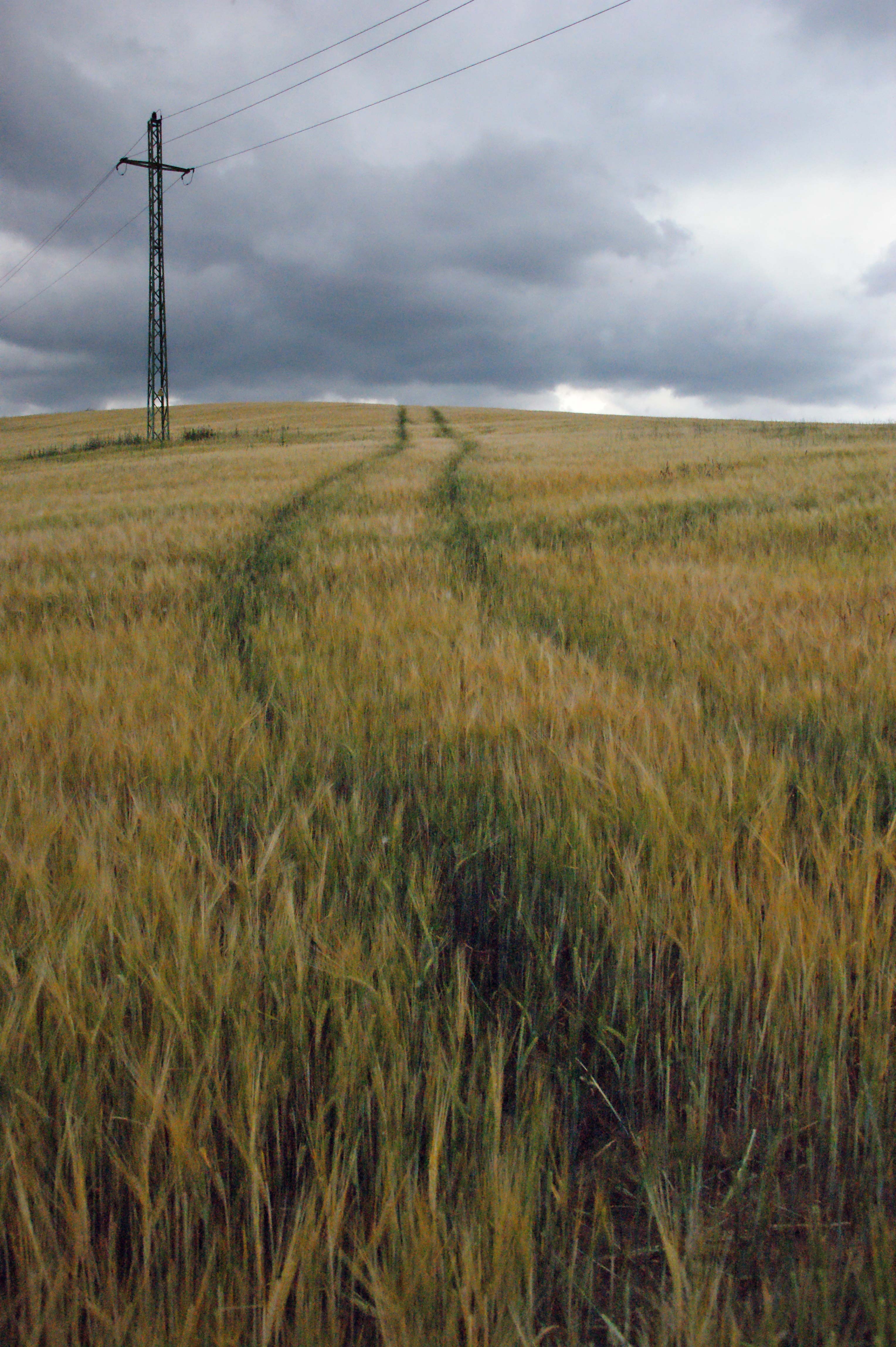 De dreigende wolken zijn fotogeniek, de lijnen in het veld leiden je blik er naar toe.