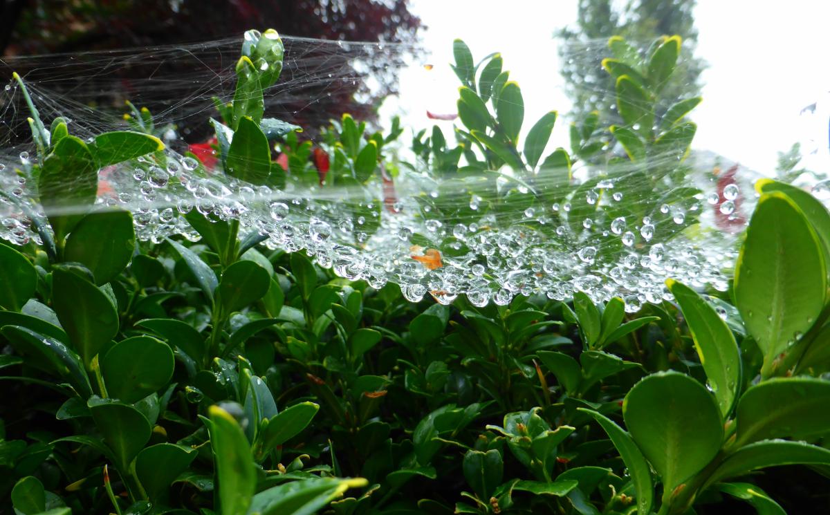 Regendruppels in een spinnenweb