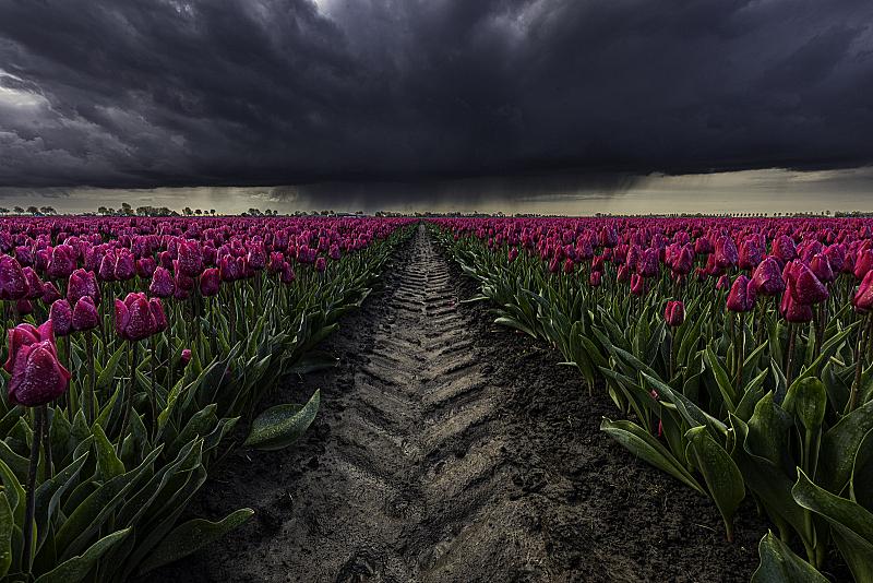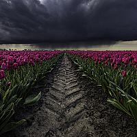 Ik zag deze wolken al toen ik de vorige foto's aan het maken was. En ik schatte in dat deze wolk weleens precies goed lag voor deze foto op een andere tulpen locatie die ik al eerder gescout had. En ja hoor , het was zo.