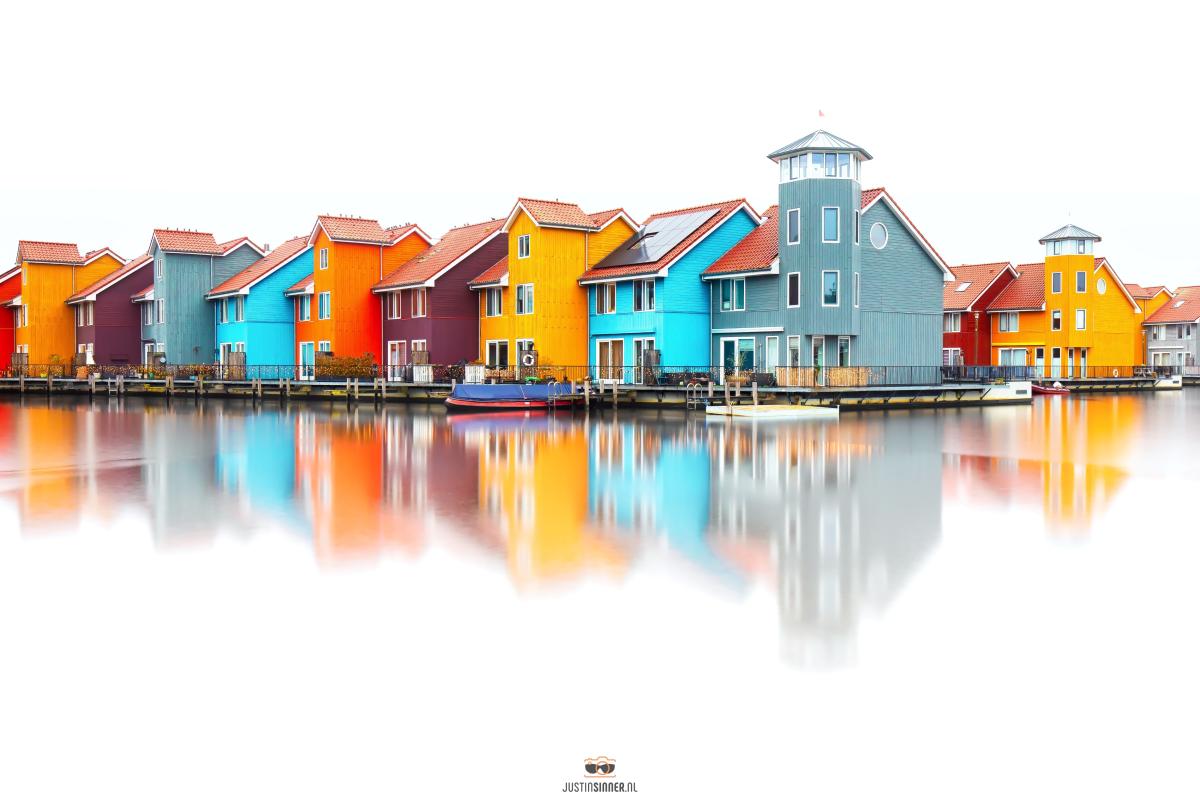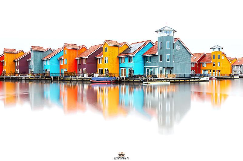 Huizen aan de Reitdiephaven in Groningen. T was een druilerige dag dus maar gekozen om de voorgrond en lucht wit te maken. Zo springen de huizen er nog beter uit. #groningen #justinsinner #reitdiephaven #fotografie