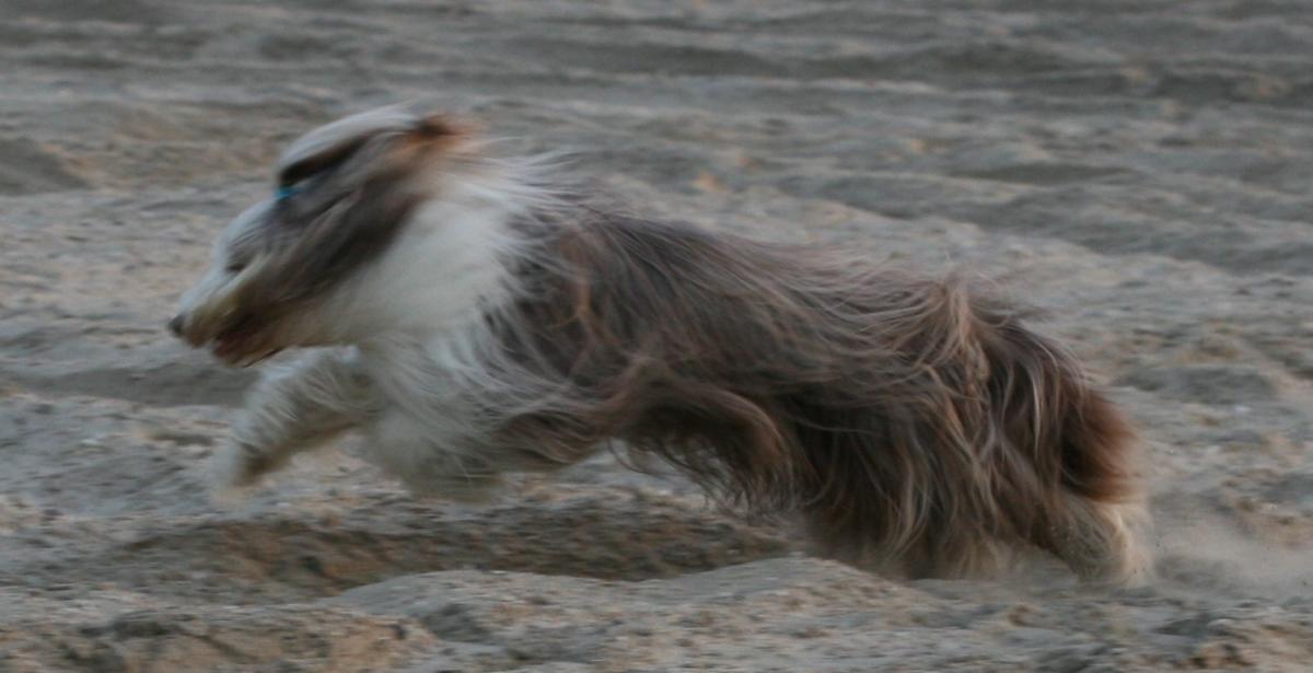 Bearded collie Bincq weer in zijn sas....baasjes ook!