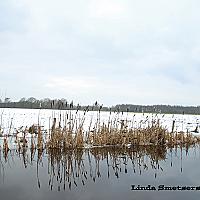 riet met weerpiegeling in het water