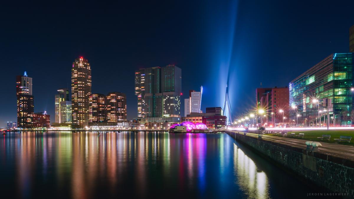 De Kop van Zuid gezien vanuit de Rijnhaven.